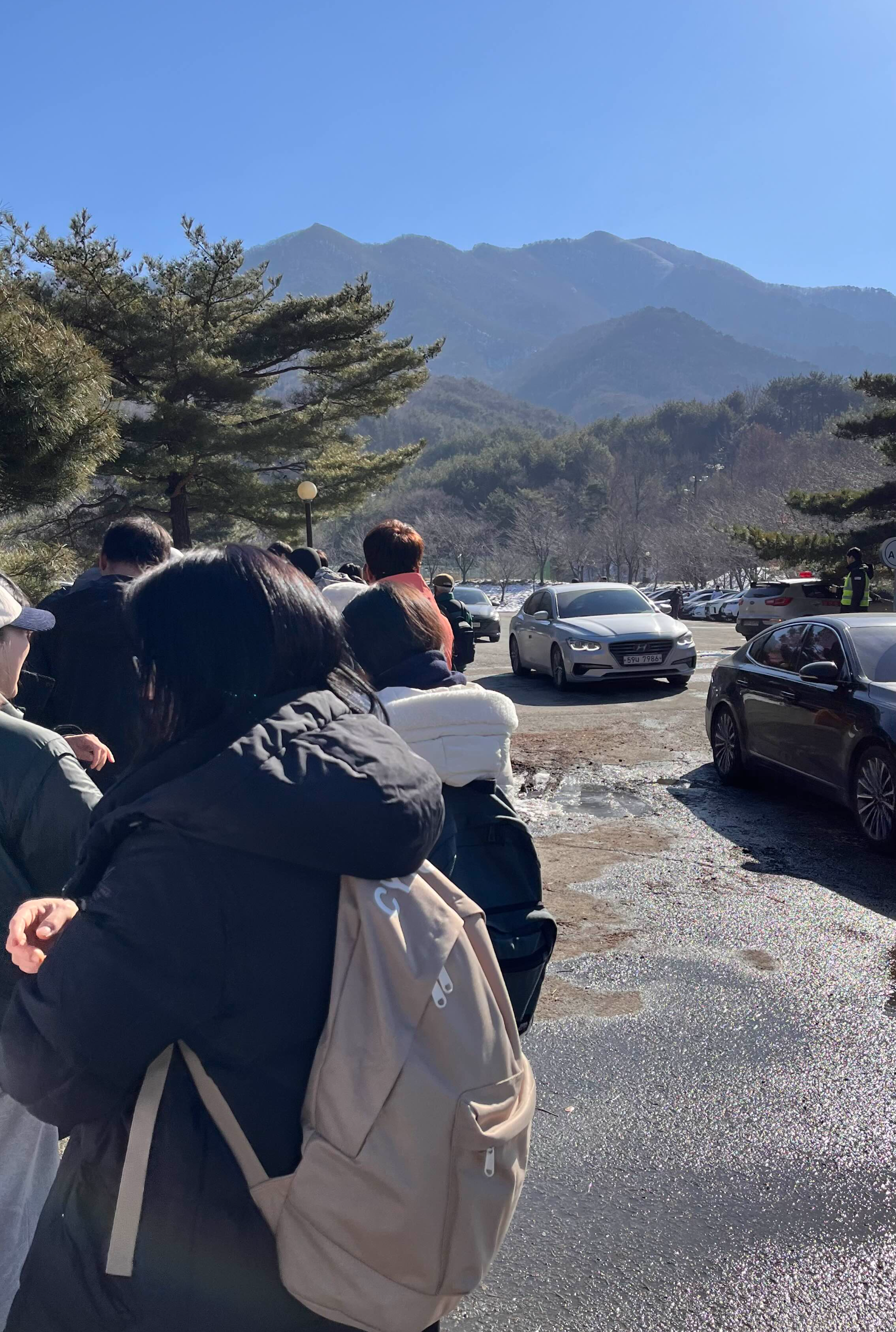 토요일 8시반쯤 출발해서 덕유산 주차장 입구에 도착하니 11시 조금 넘었어요. 곤도라 탑승장 쪽으로 오르면 주차요원이 주차를 안내를 해주더라고요. 이건 너무 좋았어요. 주차하는데 빙빙 도는 거 너무 싫거든요.