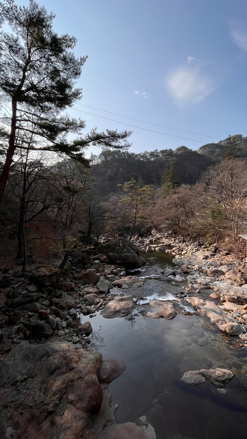 와.. 너무 예쁘지 않나요? 대원사 절 앞에 이렇게 예쁜 산책로가 있어요. 계곡 물이 어찌나 깨끗하던지요. 정말 하루 더 묵고 싶을 정도로 좋았어요.