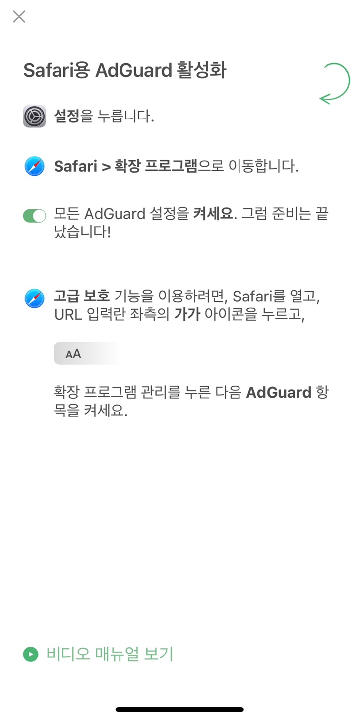 '애드가드' 활성화하는 방법이 나오는데요. 위 사진처럼 설정해 주시면 됩니다.