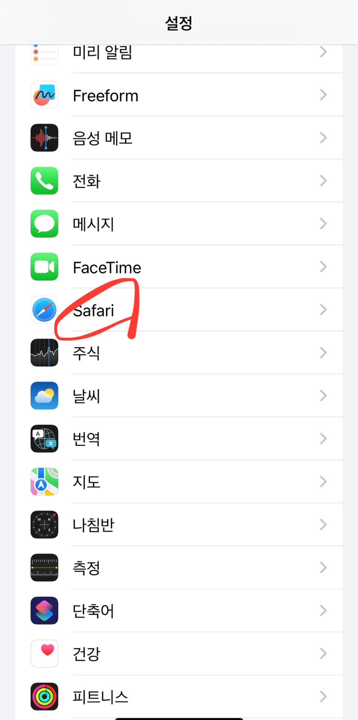 '설정'에 들어가서 'safari'(사파리)를 선택합니다. 하단에 '확장 프로그램'을 선택합니다.