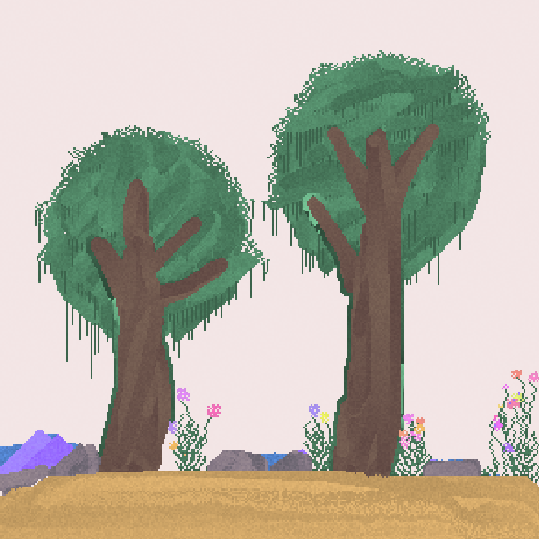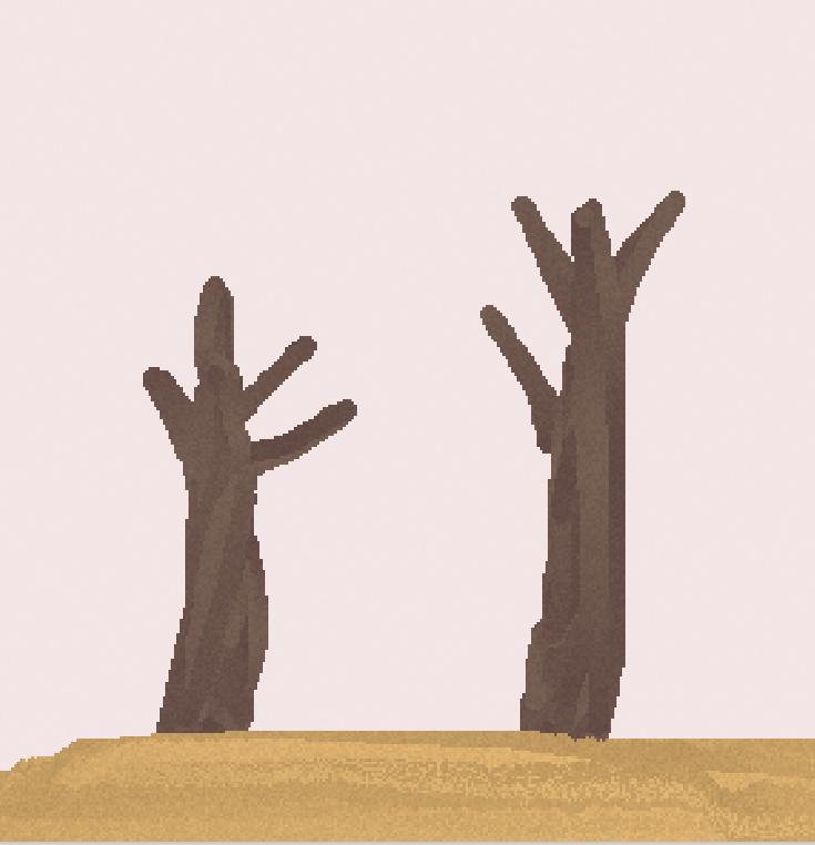 재료에서 'sand'와 'wood'로 땅과 나무 그리기