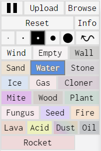 'sandspiel'에 접속을 하여 오른쪽 메뉴에서 'Reset' 버튼을 클릭하여 빈 화면으로 만들어 줍니다.