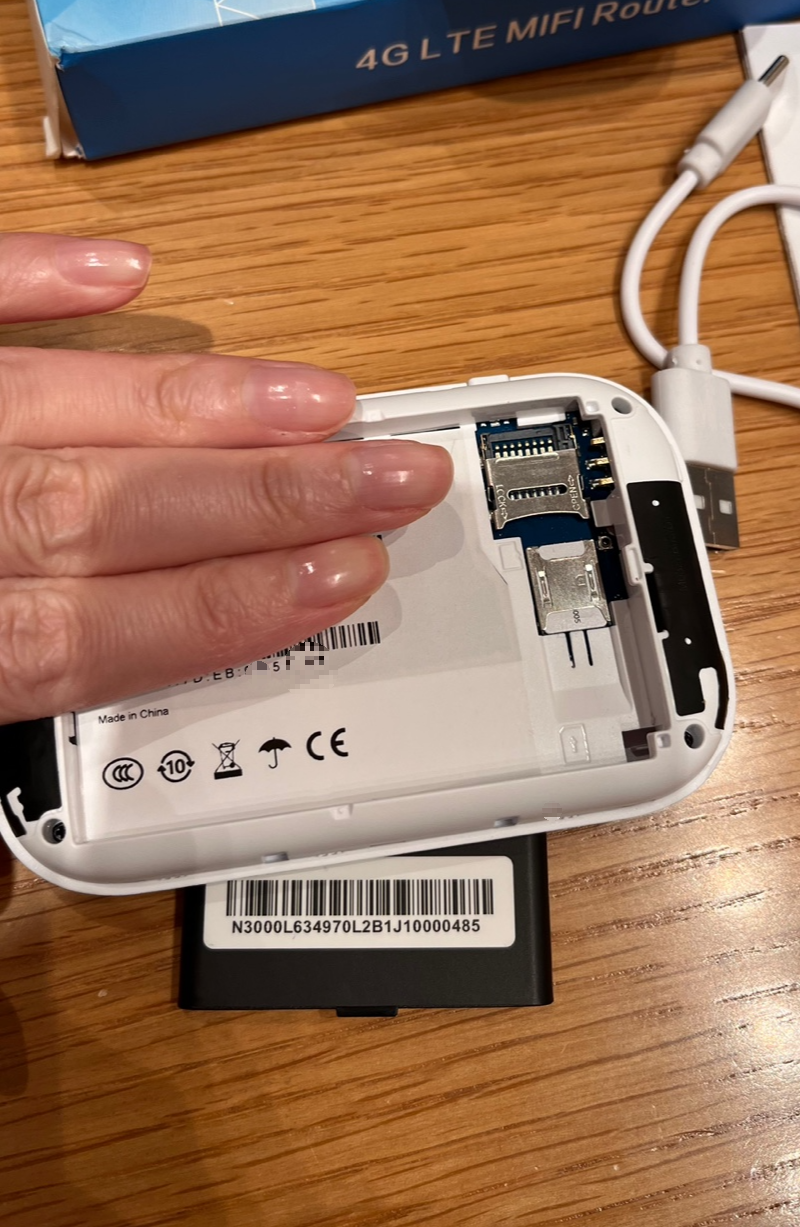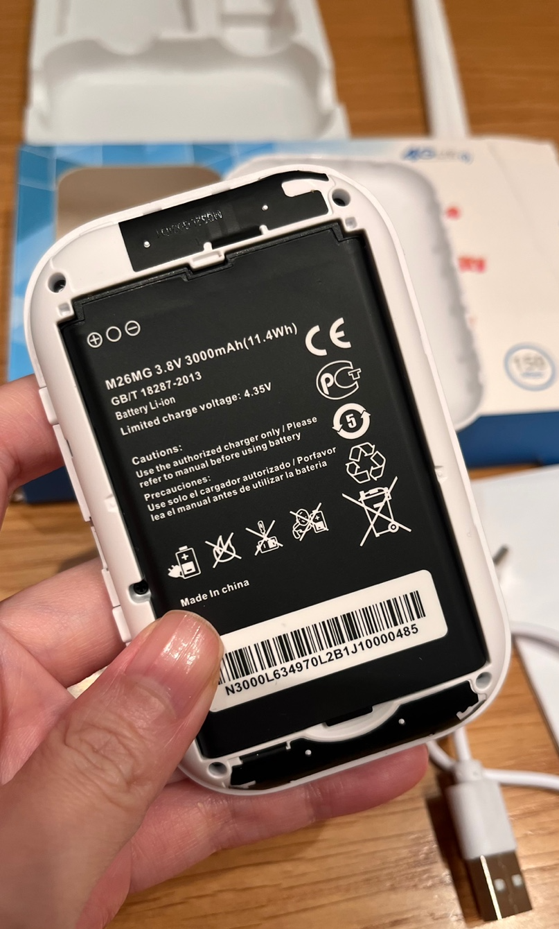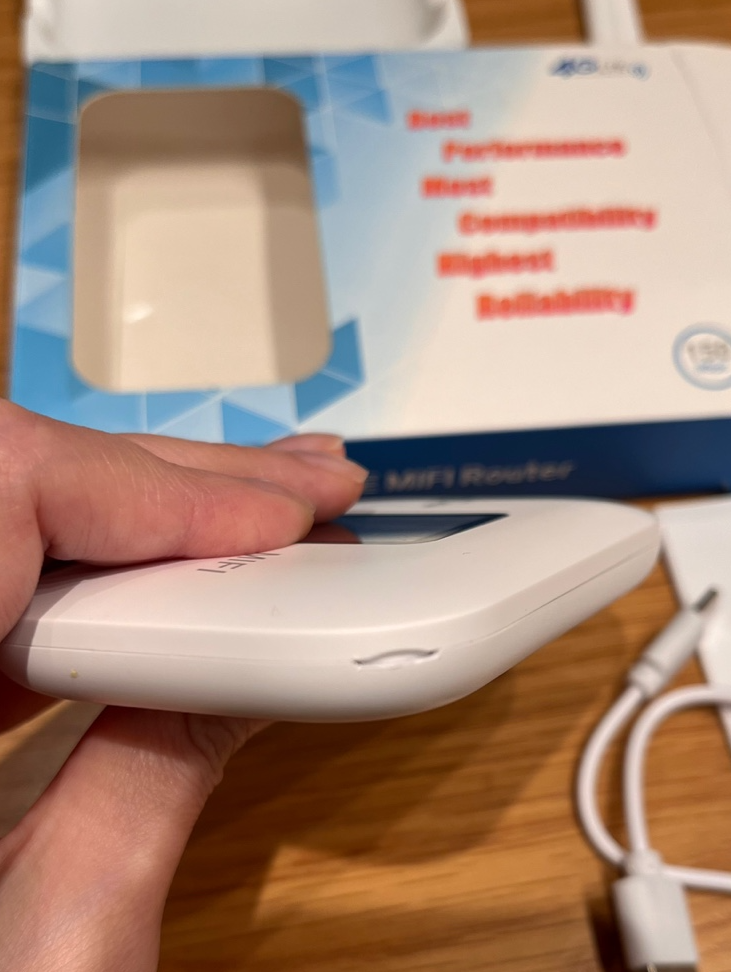라우터 본체는 크지 않고 슬림해서 마음에 들어요. 배터리는 내장되어 있고 뚜껑을 여는게 좀 어려워요. 옆에 작은 홈이 있지만 여는데 힘이 좀 듭니다.