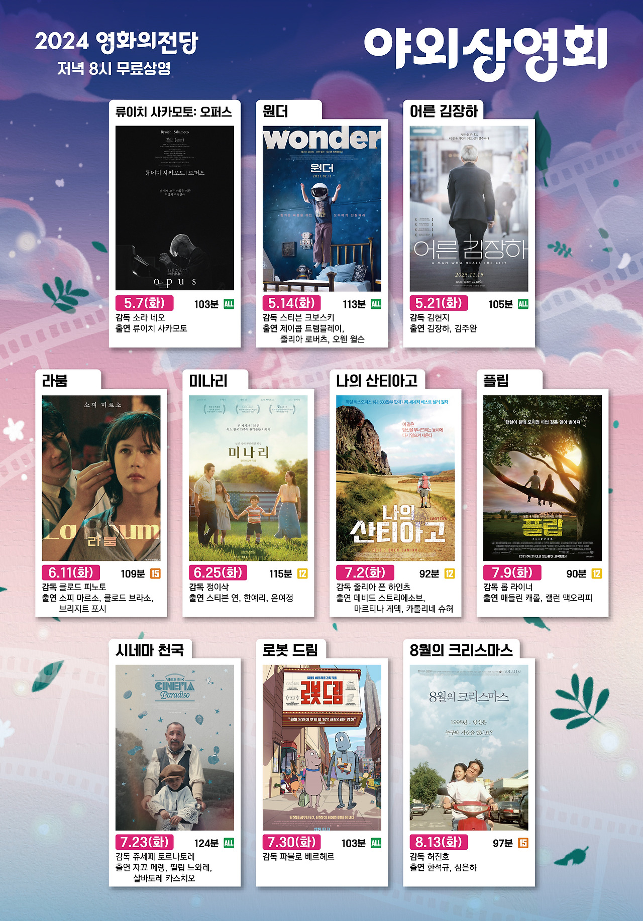 야외 상영이라 야간에는 다소 쌀쌀할 수 있으니 여분의 옷을 준비하시면 좋겠네요!!