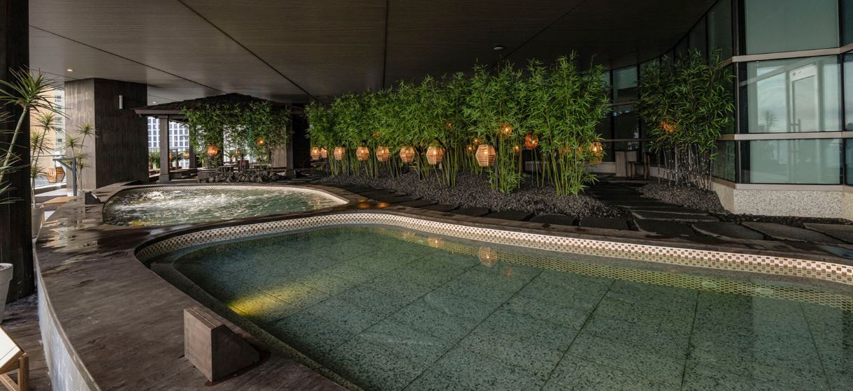 6층 야외에서 캐빈사우나를 즐길 수 있는 테라스바에는 노천족욕탕, 실외 건식 사우나, 호라이즌 바를 이용할 수 있습니다.