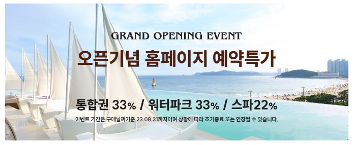 통합이용권 대인 가격이 79,000원인데 30% 할인하여 55,300원에 이용이 가능합니다. 네이버 할인 예매는 7월31일까지이니 참고하세요. 해운대 바다를 한눈에 바라보며 온천과 사우나, 워터파크 모든 것을 이용할 수 있는 곳으로, 부산 워터파크 찾으시는 분들께 추천합니다. 저도 가족들과 함께 예약하고 달려가려고 합니다.