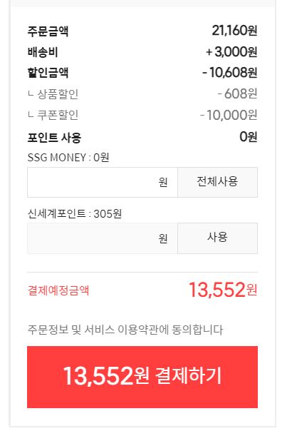 아니 2만원이상 구매 시 만원 할인 쿠폰을 준다는데 이건 안 살 수가 없네요!! 만원 할인쿠폰은 최근 1년간 쓱배송 구매이력이 없으면 바로 받을 수 있습니다. 쓱배송이 가능한 모든 상품 적용가능해서 사실 이 쿠폰이 제일 좋네요. 배송비를 제외한 상품 구매금액이 2만 원 이상이면 만원 할인이 됩니다.