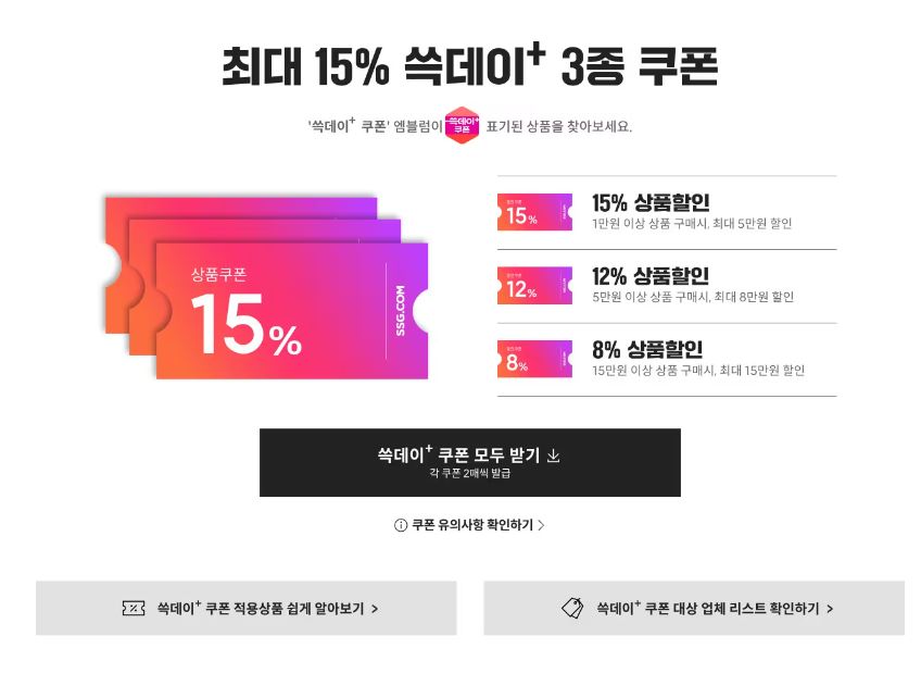 작년에 이마트 갔다가 사람이 너무 너무 많아서 쓱배송 시키려고 들어가 봤는데요. 와우 쿠폰도 증정하고 있더라고요. 쓱데이 3종쿠폰은 적용상품이 있으니 잘 살펴보고 구매하시면 됩니다.