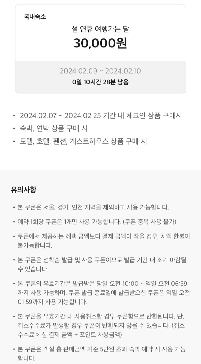 5만 원 초과 숙박 상품 예약 시 3만 원 할인이 된답니다. 너무 좋아요!! 바로 쿠폰부터 받아놨어요.