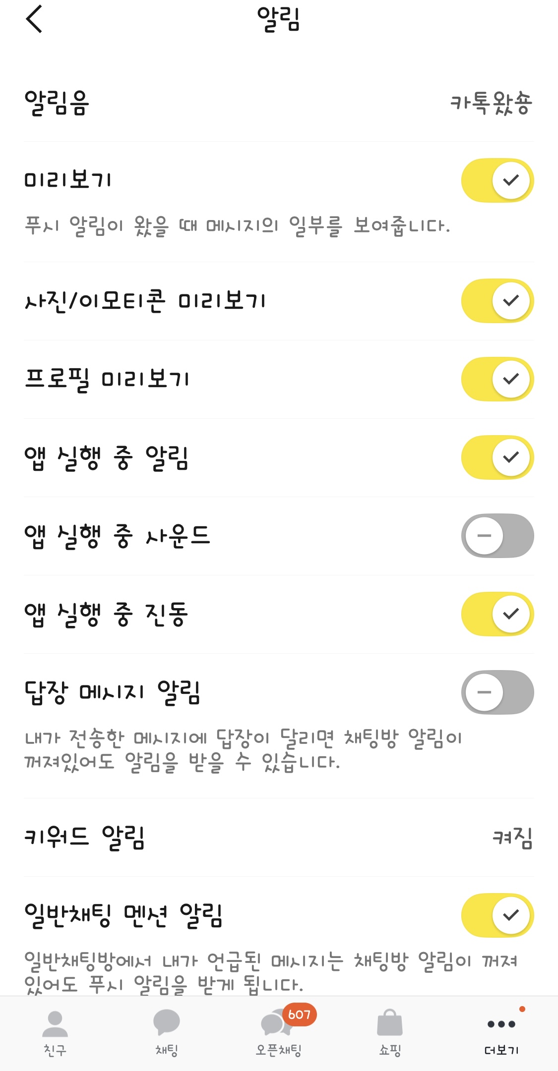- ✔ 알림 끄기: 방해받지 않는 카톡 생활