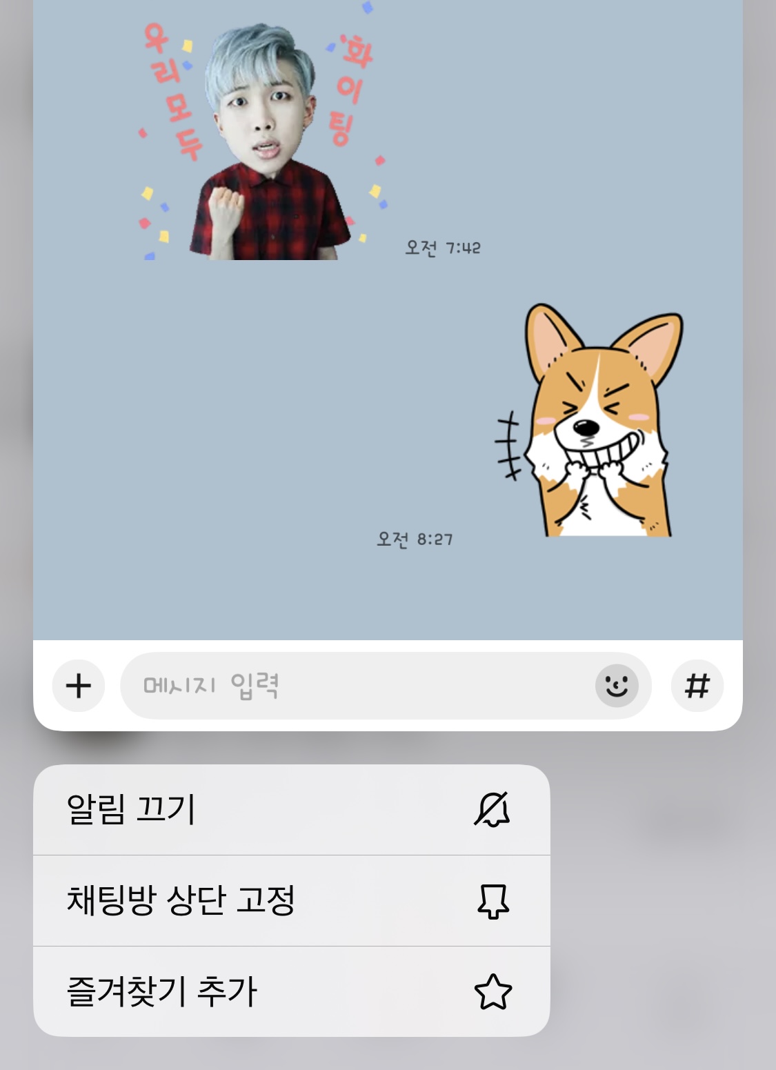 - “대화방 고정” 해제 후, 목록에서 하단으로 이동