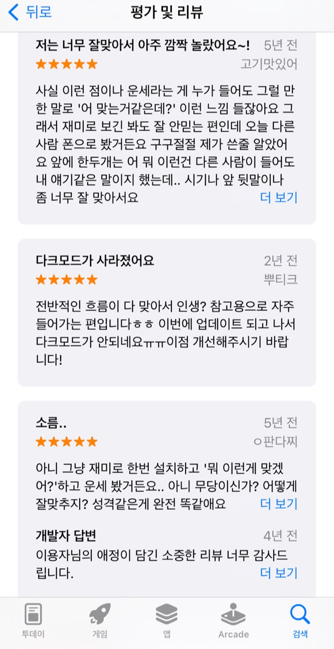 리뷰 별점도 좋지만 잘 맞다는 이야기가 굉장히 많아요. 저도 맞는 부분이 많아서 고민이 있을 때 들어가서 보는 편입니다. ㅎㅎ
