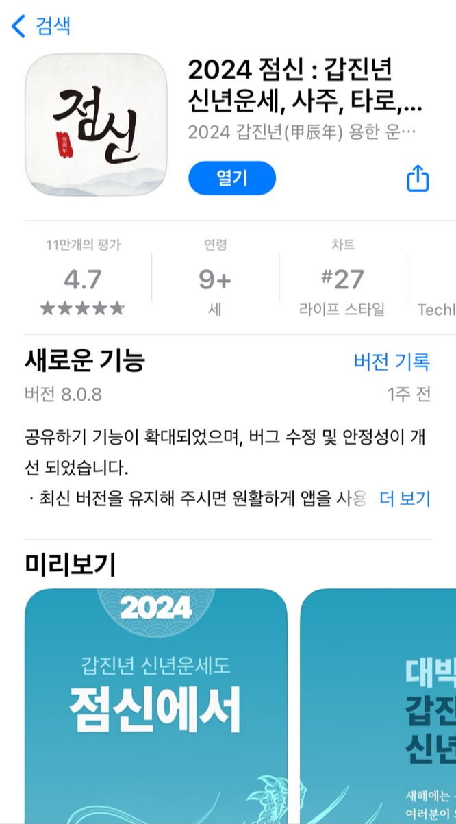 지난 포스팅에서 2024 신년운세 무료로 보는 사이트를 소개해 드렸는데요. 오늘은 가장 유명한 '점신'어플을 소개해 드리려고 합니다. 연말이나 연초에 운세, 사주, 토정비결, 궁합까지 많은 분들이 찾아보시더라고요. 저 또한 몇 년 전에 '점신' 어플을 사용해 보고 지금까지도 생각이 나면 참고하는 용도로 보는 편입니다. 생각보다 잘 맞아서 소개하려고 합니다.