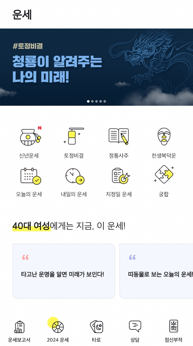 신년운세, 정통사주, 토종비결, 궁합, 타로